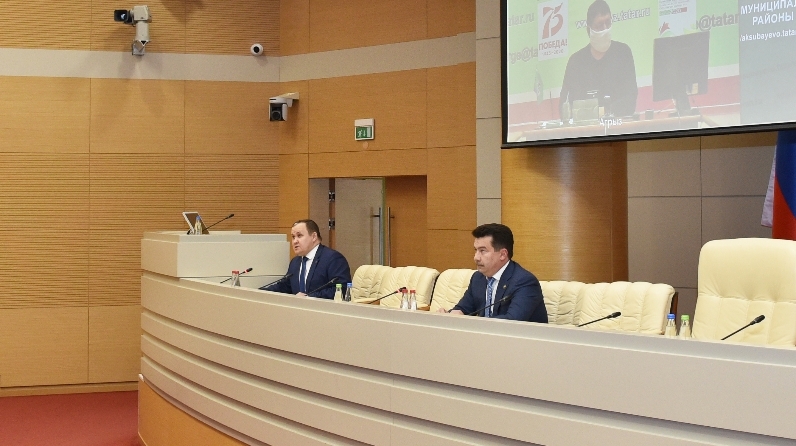 В связи с санитарно-эпидемиологической ситуацией брифинг прошел дистанционно, транслировался в режиме видеоконференцсвязи с муниципальными районами республики, а также в сети интернет (по ссылке на главной странице сайта Официальный Татарстан).