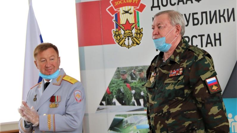 Председателю Комиссии по делам молодежи и патриотическому воспитанию Общественной Палаты Республики Татарстан, заместителю руководителя исполкома регионального отделения Офицеры России полковнику Рафаэлю Шакирзянову «За вклад в развитие организации ДОСААФ Республики Татарстан и патриотическое воспитание допризывной и призывной молодежи» председатель правления ДОСААФ Республики Татарстан Дамир Динниулов вручил памятную медаль «75 лет ПОБЕДЫ В ВЕЛИКОЙ ОТЕЧЕСТВЕННОЙ ВОЙНЕ»