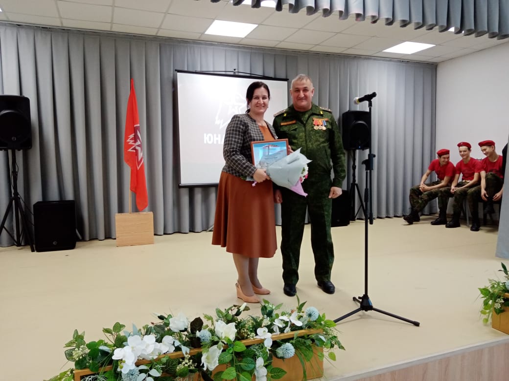 Председатель МО РОГО ДОСААФ РТ Гиниятуллин Радик Габдуллович наградил благодарственными письмом от имени РОГО ДОСААФ РТ директора школы МБОУ СОШ №2 Шарапову Халиду Рафиковну.