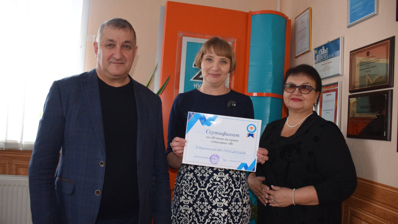 По итогом розыгрыша сертификат на обучение на водителя категории «В» выиграла жительница города Нурлат - Охотина Раиса. На вручении сертификата присутствовали руководитель Нурлатской МО РОГО ДОСААФ РТ Гиниятуллин Радик Габдуллович и директор телерадиокомпании "Нурлат" Галиева Резеда Акрамовна.