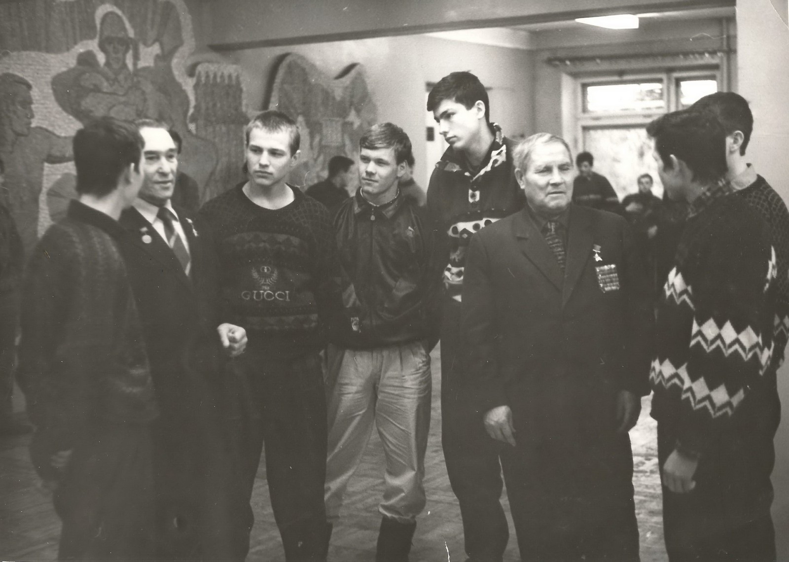 - Герои Советского Союза, воспитанники ОСОВИАХИМ Татарии Михаил Петрович Девятаев и Борис Кириллович Кузнецов с воспитанниками Казанской автошколы ДОСААФ, 1990-е гг.
