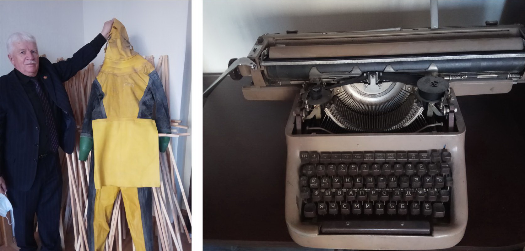 Печатная машинка и водолазный костюм, которые использовались сотрудниками оборонного общества в 70-90-е годы, значки (РОСТО, ДОСААФ, ГТО) и вымпела разных лет стали достоянием Музея истории благодаря представителям отдела профессионального обучения.