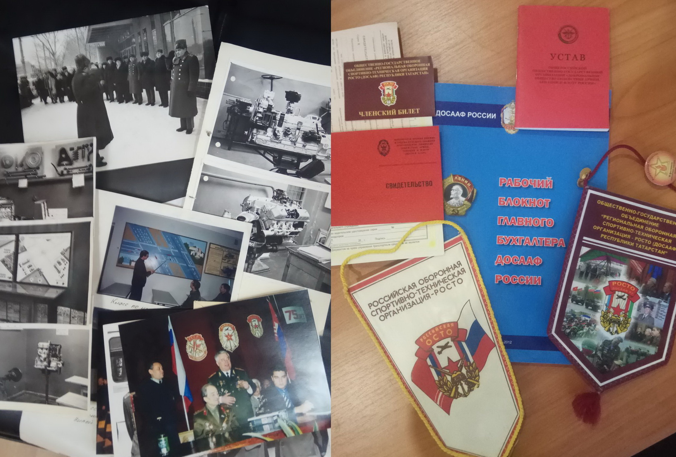 Большое количество исторических фотографий бережно сохранили и передали в дар создаваемого музея сотрудники орготдела и отдела патриотического воспитания и спорта ДОСААФ РТ. Среди них например, такие фотографии: