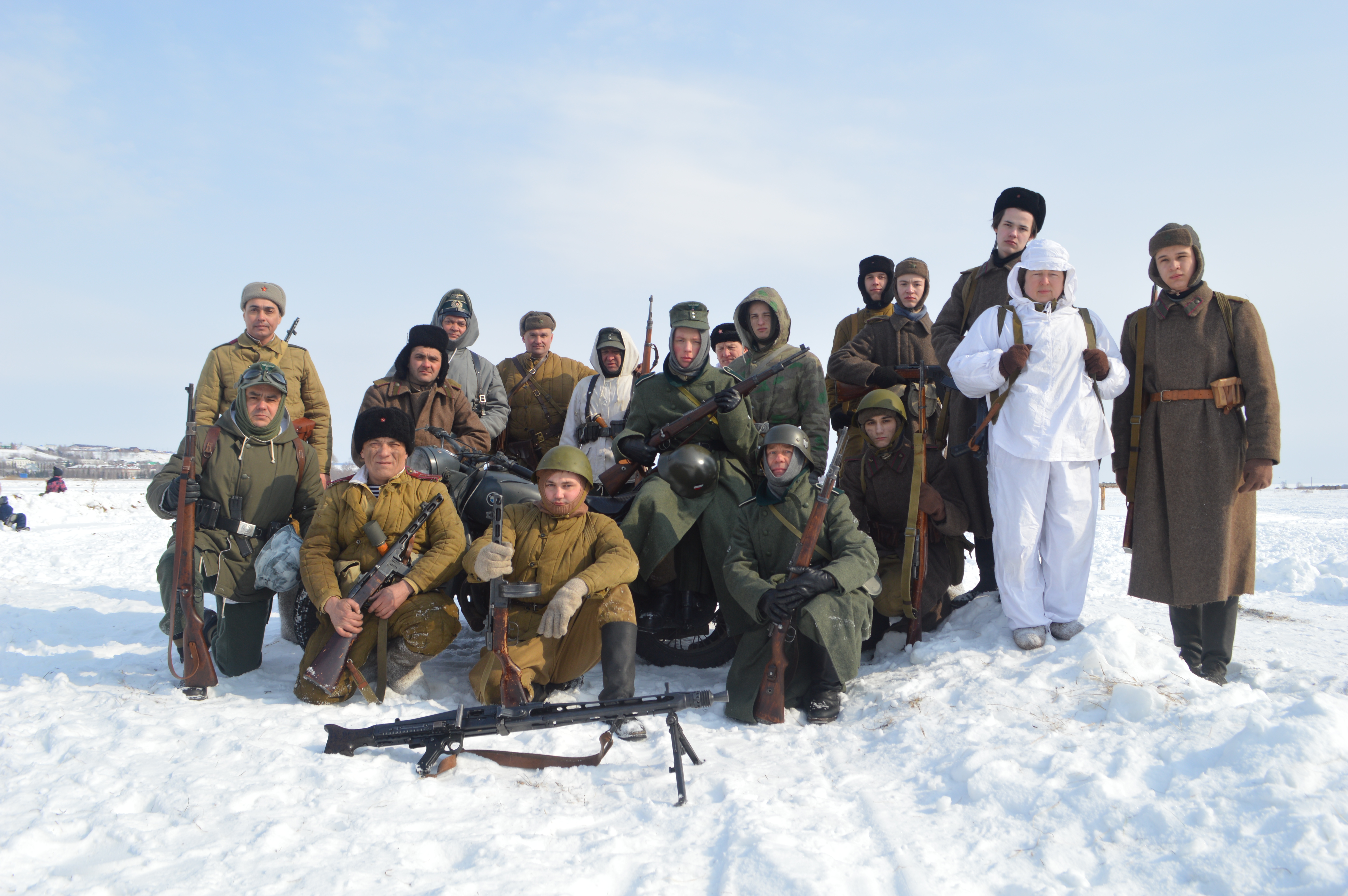 В этот день в рамках патриотического воспитания детей и молодежи состоялось шествие военной техники и солдат в военной форме. Поисковые отряды «Выстрел» (Чистополь) и «Татнефть поиск» (Заинск), военно-исторические клубы «За Родину» (Наб.Челны) и «Звезда» (Алексеевск) при поддержке ПОУ Чистопольская школа ДОСААФ представили вниманию зрителей выставку найденных экспонатов времен ВОВ 1941-1945 гг. и реконструкцию боя «Освобождение Витебска в Белоруссии, 1944 год». На площадке была разыграна театрализованная сюжетная постановка с применением охолощённого оружия и боевой техники –мотоцикла. Стрельба велась свето-шумовыми боеприпасами, имитирующими стрельбу боевыми.