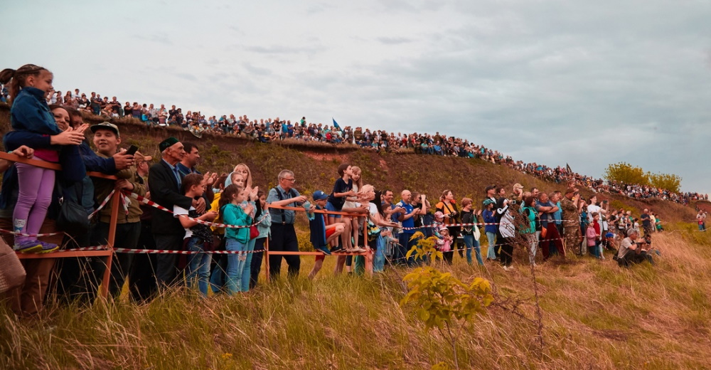 Зрителей, несмотря на гулявшие хмурые тучи, собралось довольно много, тем, кто пришел за десять минут до начала, уже было сложно найти место, с которого был бы хороший обзор на поле, на котором готовилось действие. Среди зрителей было много семей с детьми всех возрастов. Пришедших окунуться в те страшные мгновения войны было более трёх тысяч и все они были поражены масштабами фестиваля и зрелищностью боев.