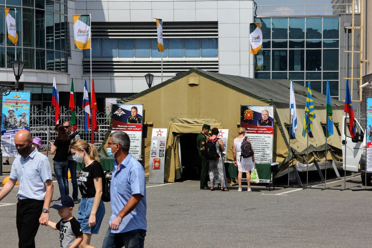 Также на перроне железнодорожного вокзала для гостей и жителей столицы была организована полевая кухня в период с 11:00 до 14:00, мобильный пункт отбора на военную службу по контракту, где каждый смог ознакомиться с видами и родами войск, а также пройти первичные мероприятия профессионально-психологического отбора.