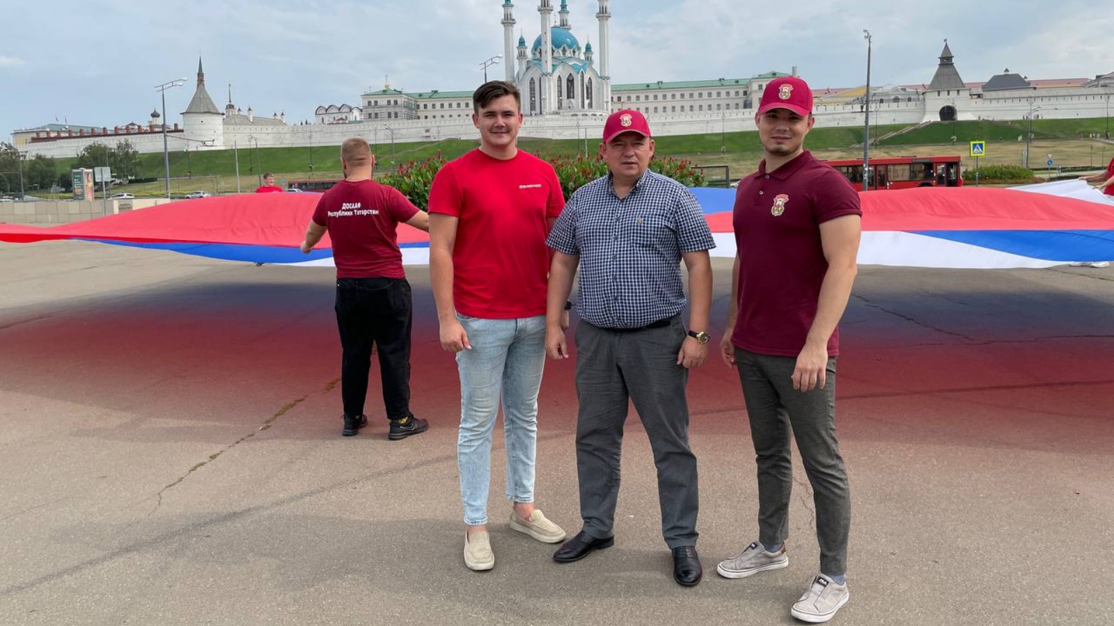 А 22 августа Команда «Молодежки ОНФ» и ДОСААФ Республики Татарстан развернули российский триколор размером более 150 квадратных метров в центре столицы республики в честь празднования Дня Государственного флага.