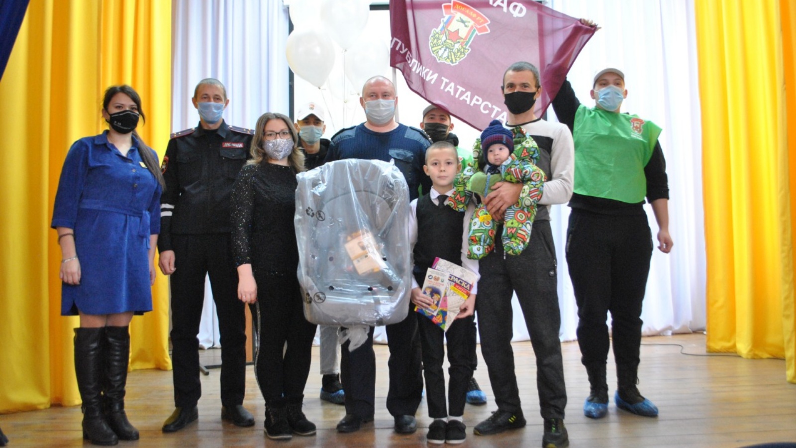 Многодетной семье Сунгатуллиных-Мусиных из Новошешминска подарено детское автокресло. Начальник ОГИБДД Евгений Михайлов, инспектор БДД Айрат Сатдаров и начальник ТУ ГБУ БДД г. Нурлат Алина Филиппова пожелали семье счастья, здоровья и безопасных дорог и напомнили, что до конца этой недели в районе повсеместно будут проходить мероприятия, приуроченные Всемирному дню памяти жертв ДТП. В заключительной части курсанты Чистопольской технической школы ДОСААФ с руководителем Хасановой Д.Ф.,отрядом ЮИД и присутствующие почтили память жертв ДТП минутой молчания выпустив белые шарики в небеса. Белые шары, улетающие в небо, как символ памяти о детях, чьи души улетели в небеса.