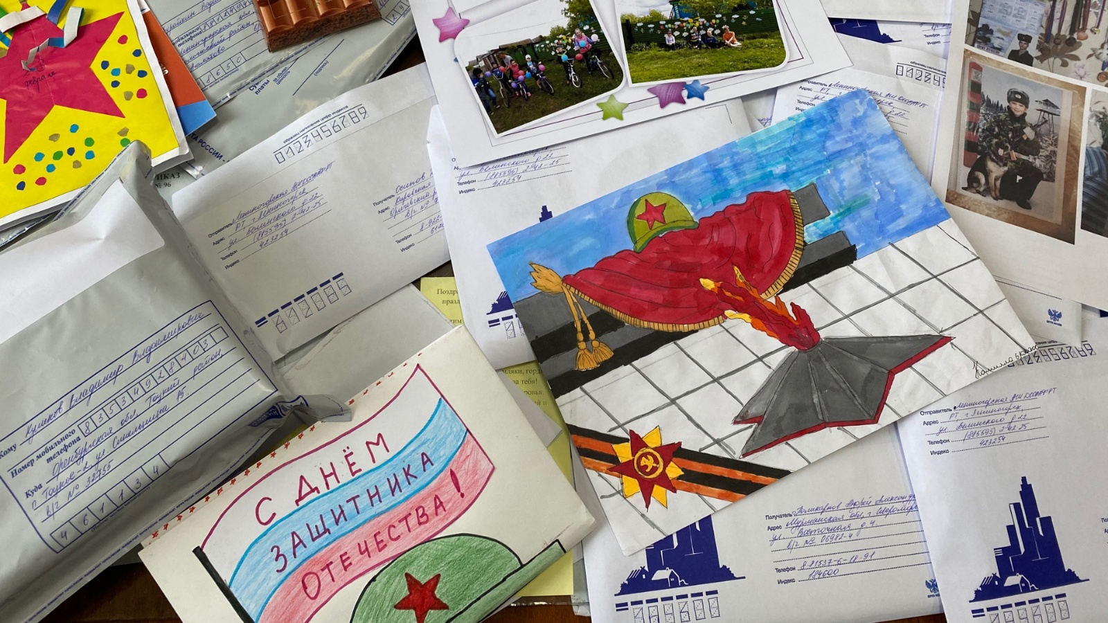Более 100 писем, поздравительных открыток, творческих работ и посылок отправлены в разные уголки нашей страны, в воинские части, где проходят срочную службу в рядах вооруженных сил РФ наши земляки. Письма, написанные от руки, несут особую энергетику. В них есть тепло, душа автора, его мысли, тревоги, сопереживания, гордость за солдата. Надеемся, что послания дойдут до адресатов и подарят им положительные эмоции в преддверии праздника 23 февраля.