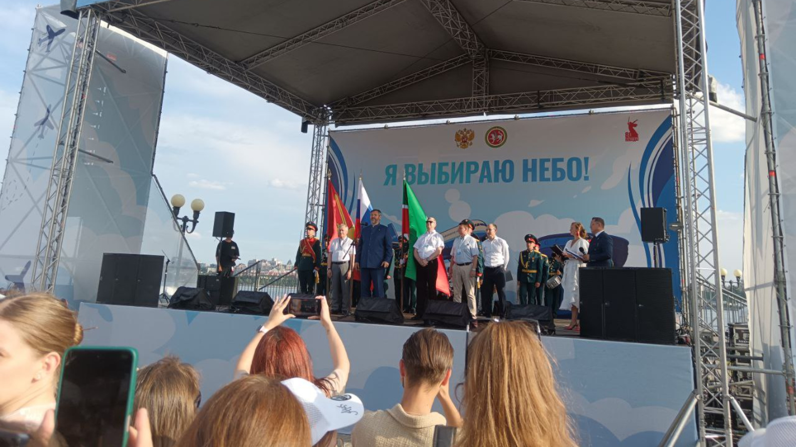 Председатель правления ДОСААФ Республики Татарстана Сергей Петрович Старостин в своей речи выразил искреннюю благодарность работникам аэроклуба и ветеранам, подчеркнув их неоценимый вклад в развитие авиации и патриотическое воспитание молодежи. Он пожелал всем присутствующим «чистого неба», символизирующего мир и благополучие.